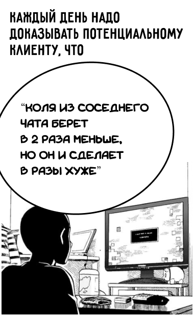 Составите портрет клиента, с которым вам комфортно работать и который много платит. Научитесь продавать свои услуги круче любого маркетолога и только платежеспособным заказчикам.